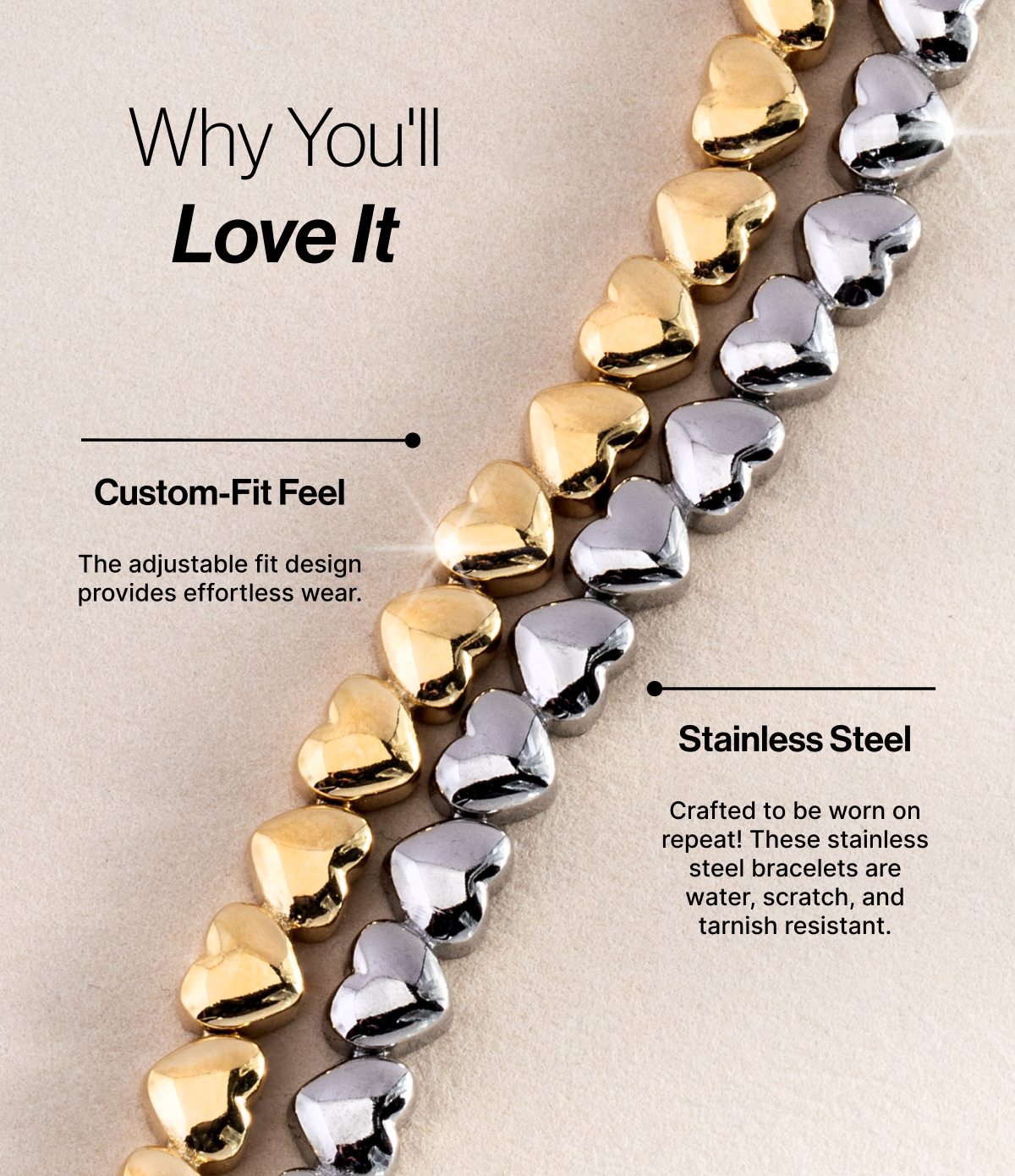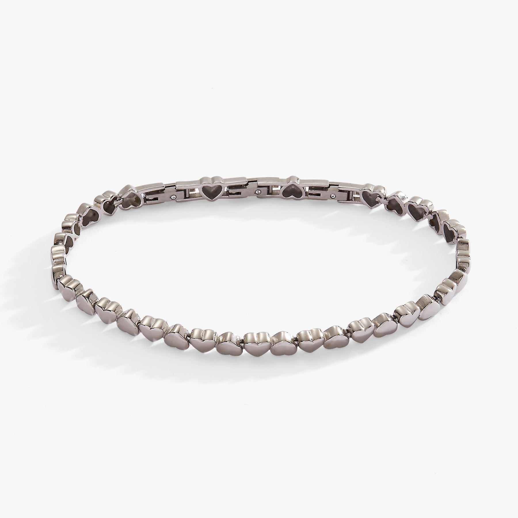 A symbol of love in all its forms, the heart isn’t just our emotional center. It’s where everything begins, and where everything returns. This Heart Charm Tennis Bracelet features heart charms inline on an adjustable-length bracelet. Because it’s silver-tone stainless steel, it’s durable and tarnish resistant for everyday wear. Layer it with other symbols of love as a reminder that with an open heart, all things are possible.
