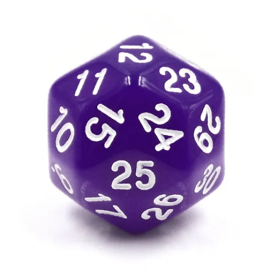- Features numbers 1-30, 30-sided dice!