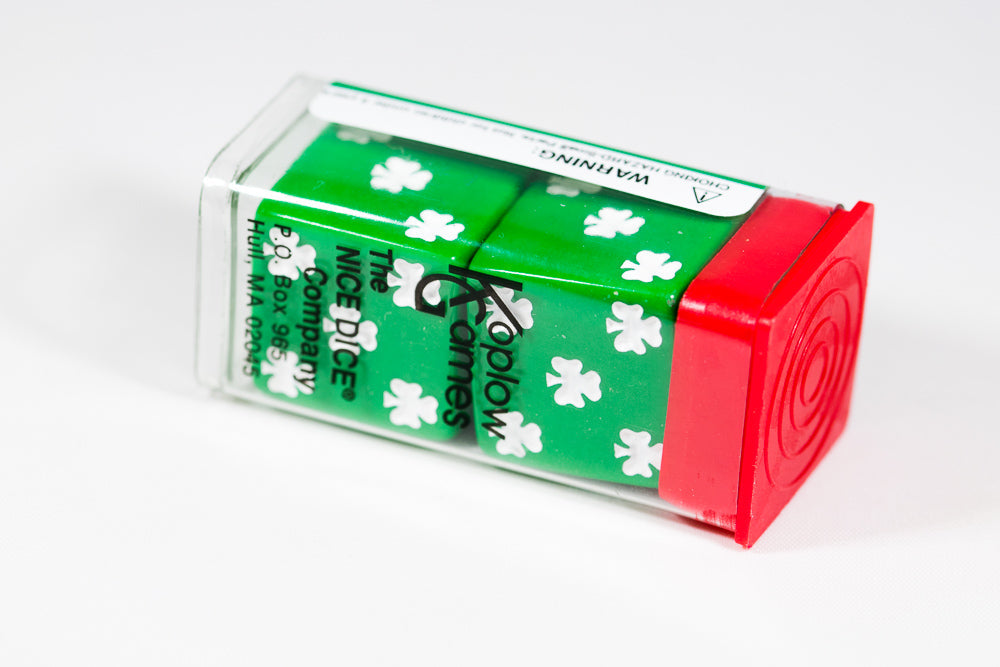 Lucky Green Dice with White Clovers Pair 25mm