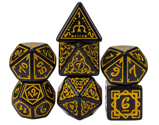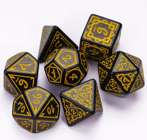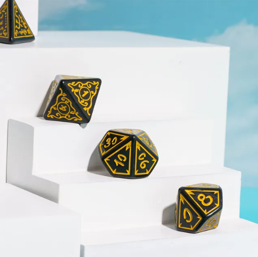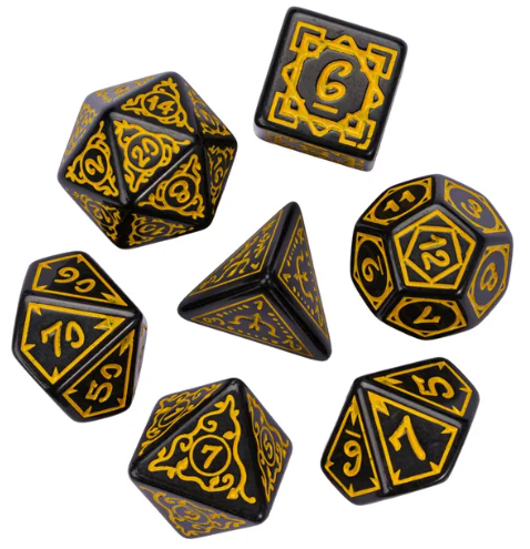 Yellow Druid Pattern 7-Dice Set DND RPG Dice Black Druid Dice Set